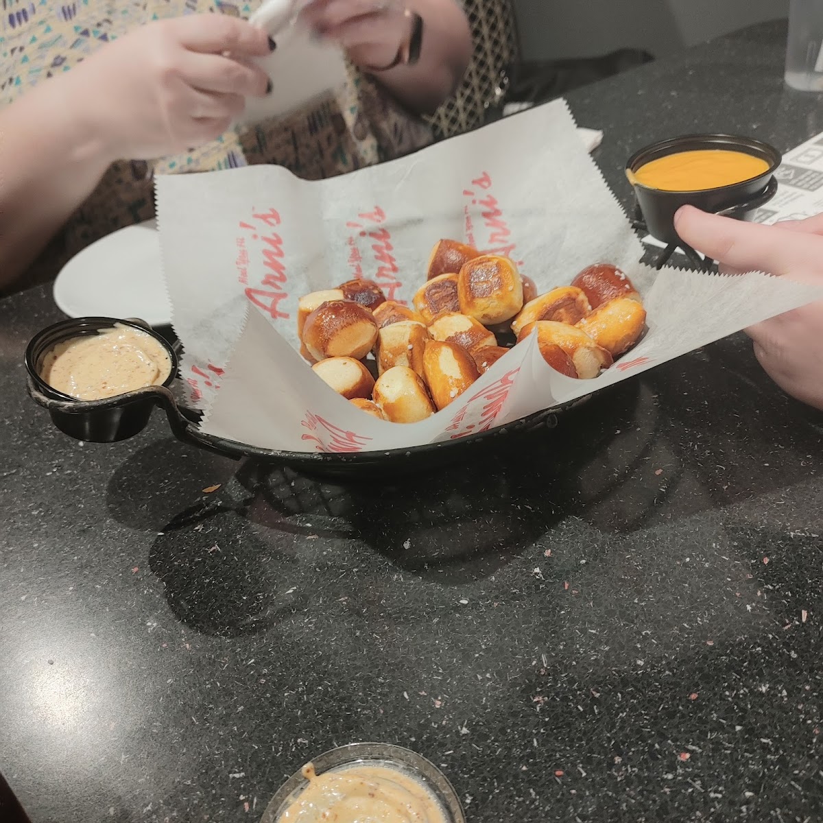 The Italian Margherita Flatbread was chock full of flavor and very light. The cheese, tomatoes, and balsamic drizzle worked well tell together. The Pretzel bites were soft and salty and tasted even better dipped into the cheese sauce. My wife and son loved their pizzas. The staff was friendly, attentive, and helpful.